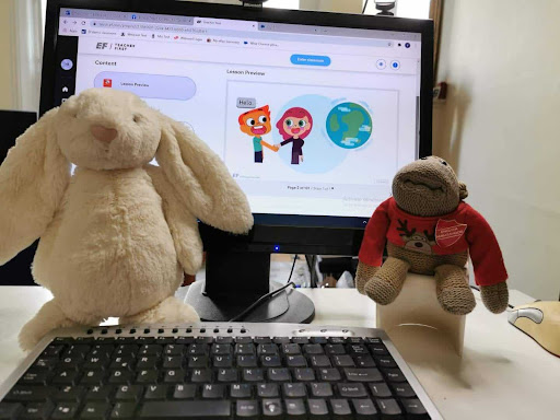EF Teach Online asks teachers to have a plain, neutral background while teaching so that students are not distracted, but teachers can use props to enhance the lesson delivery. Each lesson is 1:1 and 25 minutes long, and the time flies by. After the lesson, teachers complete an After Class Report for the parents to give them feedback.